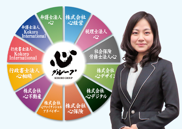 続き弁護士74名、税理士51名、社会保険労務士・社会保険労務士試験合格者25名、行政書士・行政書士試験合格者34名、宅地建物取引士・宅地建物取引士試験合格者32名の他、経営コンサルタント、会計コンサルタント、その他スタッフを合わせて総勢約300名で活動しています(弁護士数は弁護士法人心と弁護士法人Kokoro Internationalを合わせた人数、税理士数は税理士法人心・税理士法人心グループを合わせた人数になります。)。